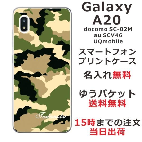 Galaxy A20 ケース SC-02M SCV46 ギャラクシーA20 カバー らふら 名入れ 迷彩 グリーン