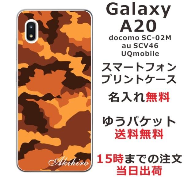 Galaxy A20 ケース SC-02M SCV46 ギャラクシーA20 カバー らふら 名入れ 迷彩 ブラウン