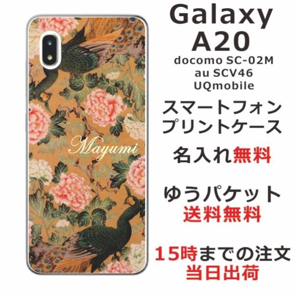 Galaxy A20 ケース SC-02M SCV46 ギャラクシーA20 カバー らふら 名入れ 和柄 孔雀牡丹
