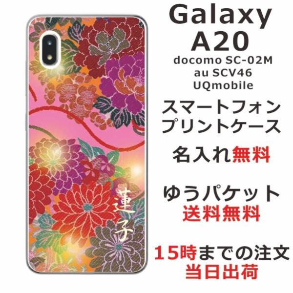 Galaxy A20 ケース SC-02M SCV46 ギャラクシーA20 カバー らふら 名入れ 和柄 和花ピンク