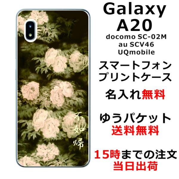 Galaxy A20 ケース SC-02M SCV46 ギャラクシーA20 カバー らふら 名入れ 和柄 セピア牡丹