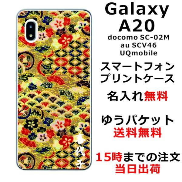 Galaxy A20 ケース SC-02M SCV46 ギャラクシーA20 カバー らふら 名入れ 和柄 千代紙ゴールド