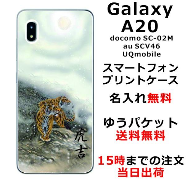 Galaxy A20 ケース SC-02M SCV46 ギャラクシーA20 カバー らふら 名入れ 和柄 白夜双虎