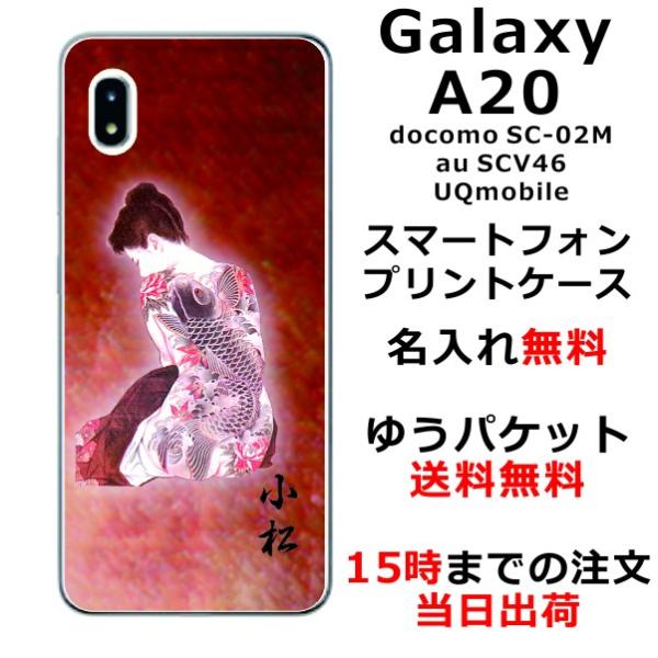 Galaxy A20 ケース SC-02M SCV46 ギャラクシーA20 カバー らふら 名入れ 和柄 艶女昇鯉