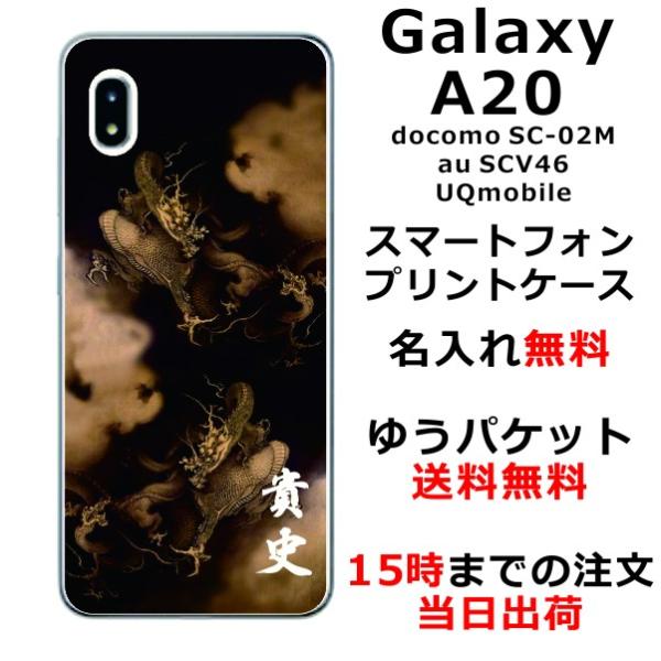 Galaxy A20 ケース SC-02M SCV46 ギャラクシーA20 カバー らふら 名入れ 和柄 昇龍セピア