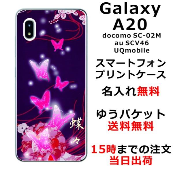 Galaxy A20 ケース SC-02M SCV46 ギャラクシーA20 カバー らふら 名入れ 和柄 紫闇光蝶