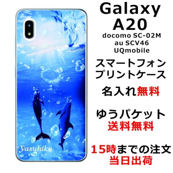 Galaxy A20 ケース SC-02M SCV46 ギャラクシーA20 カバー らふら 名入れ ドルフィン リング