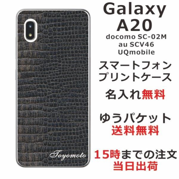 Galaxy A20 ケース SC-02M SCV46 ギャラクシーA20 カバー らふら 名入れ クロコダイル ブラック