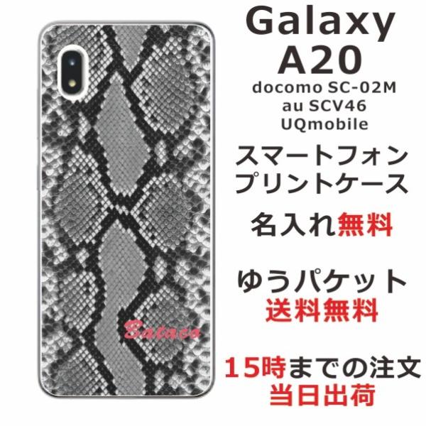 Galaxy A20 ケース SC-02M SCV46 ギャラクシーA20 カバー らふら 名入れ へび柄 ブラック