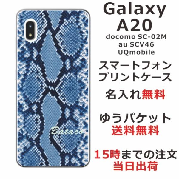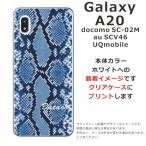 Galaxy A20 ケース SC-02M SCV46 ギャラクシーA20 カバー らふら 名入れ へび柄 ブルー