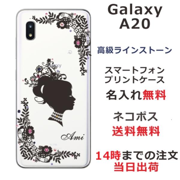 Galaxy A20 ケース SC-02M SCV46 ギャラクシーA20 カバー ラインストーン かわいい らふら 名入れ フラワープリンセス