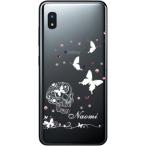 Galaxy A20 ケース SC-02M SCV46 ギャラクシーA20 カバー ラインストーン かわいい らふら 名入れ スカルバタフライ
