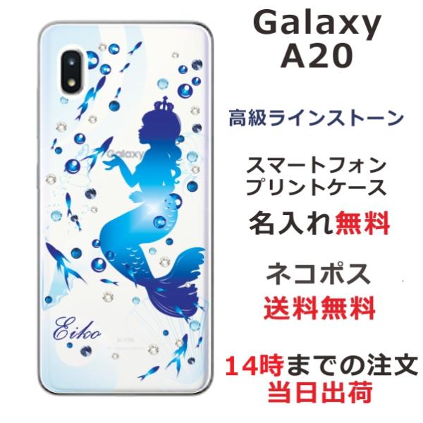 Galaxy A20 ケース SC-02M SCV46 ギャラクシーA20 カバー ラインストーン かわいい らふら 名入れ 人魚姫