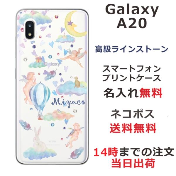 Galaxy A20 ケース SC-02M SCV46 ギャラクシーA20 カバー ラインストーン かわいい らふら 名入れ エンジェルスカイ