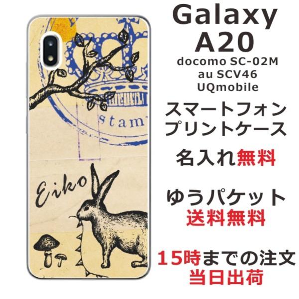 Galaxy A20 ケース SC-02M SCV46 ギャラクシーA20 カバー らふら 名入れ アンティークうさぎ