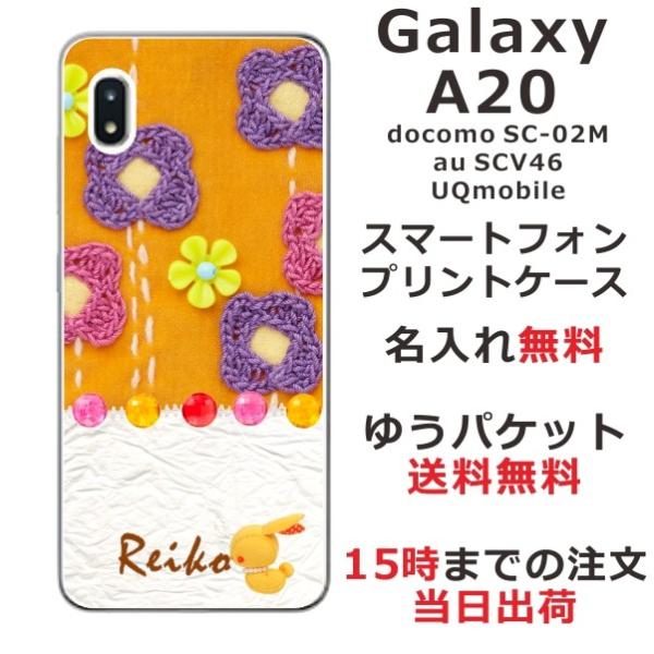 Galaxy A20 ケース SC-02M SCV46 ギャラクシーA20 カバー らふら 名入れ キルトフラワーオレンジ