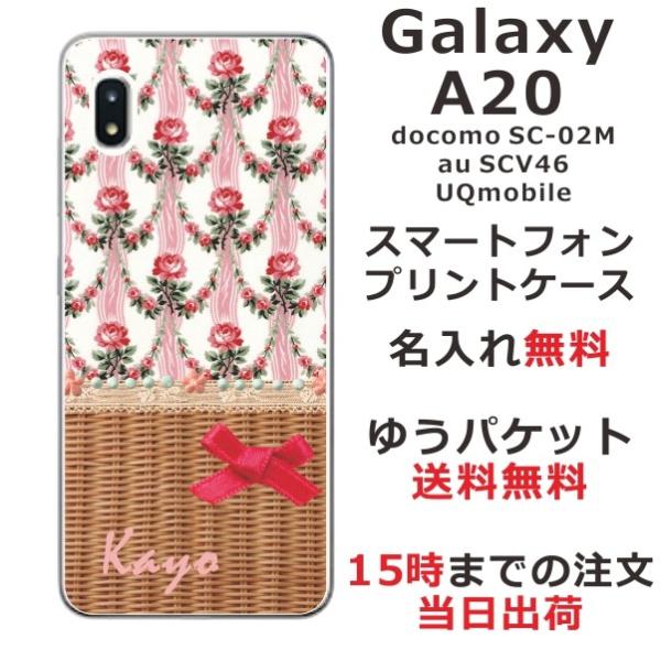 Galaxy A20 ケース SC-02M SCV46 ギャラクシーA20 カバー らふら 名入れ バラリボン