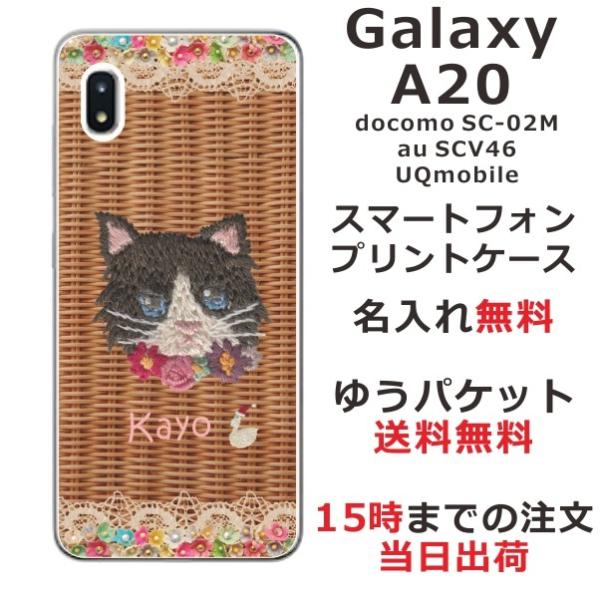 Galaxy A20 ケース SC-02M SCV46 ギャラクシーA20 カバー らふら 名入れ 籐猫黒