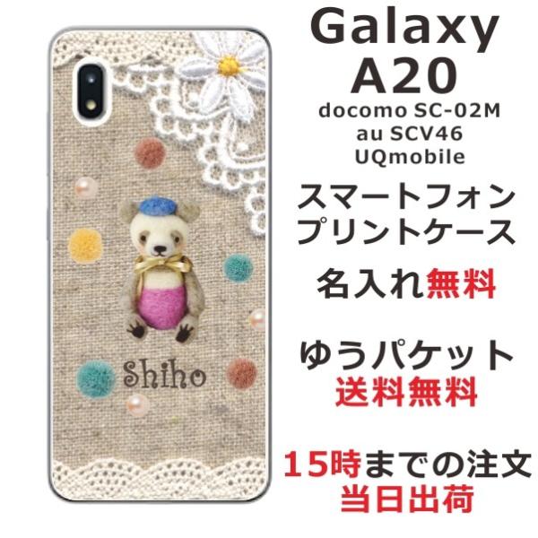 Galaxy A20 ケース SC-02M SCV46 ギャラクシーA20 カバー らふら 名入れ コットンレース風 クマ