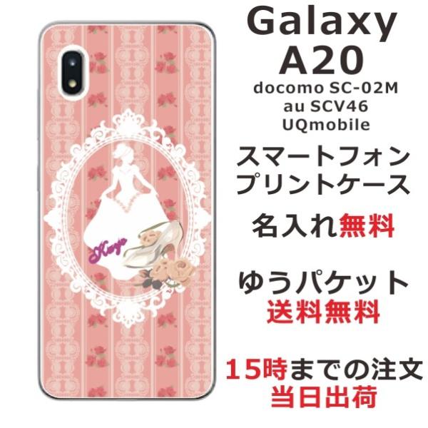 Galaxy A20 ケース SC-02M SCV46 ギャラクシーA20 カバー らふら 名入れ シンデレラ ガラス 靴ピンク