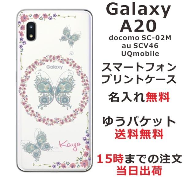 Galaxy A20 ケース SC-02M SCV46 ギャラクシーA20 カバー らふら 名入れ レース バタフライ