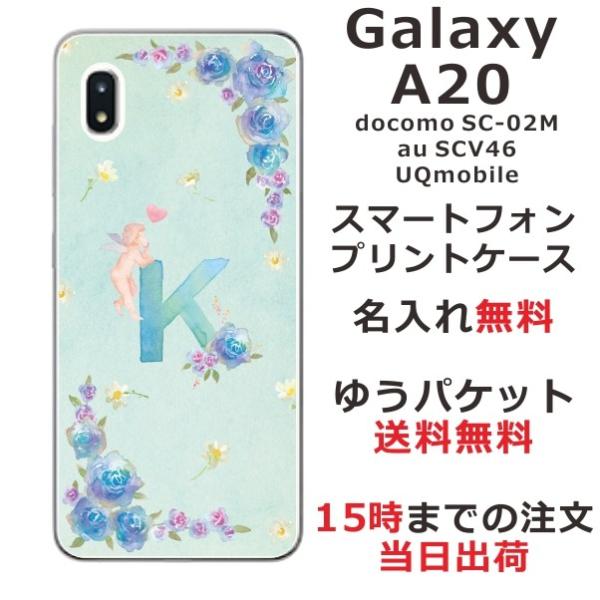 Galaxy A20 ケース SC-02M SCV46 ギャラクシーA20 カバー らふら 名入れ イニシャル エンジェル