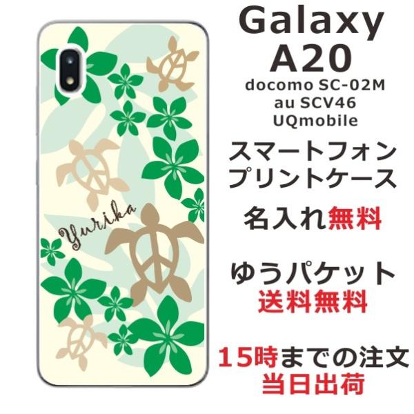 Galaxy A20 ケース SC-02M SCV46 ギャラクシーA20 カバー らふら 名入れ ハワイアン グリーン ホヌ