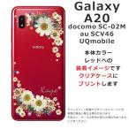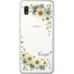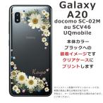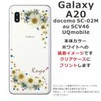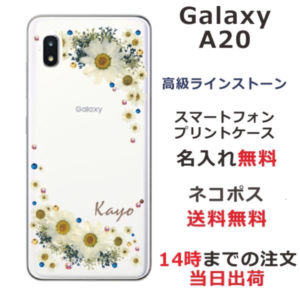 Galaxy A20 ケース SC-02M SCV46 ギャラクシーA20 カバー ラインストーン かわいい フラワー 花柄 らふら 名入れ 押し花風 フラワリー ホワイト