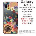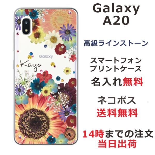 Galaxy A20 ケース SC-02M SCV46 ギャラクシーA20 カバー ラインストーン かわいい フラワー 花柄 らふら 名入れ 押し花風 フラワーアレンジカラフル