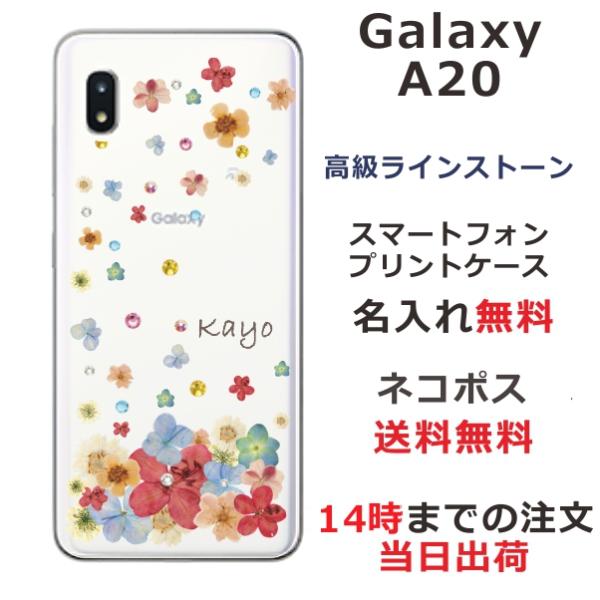 Galaxy A20 ケース SC-02M SCV46 ギャラクシーA20 カバー ラインストーン かわいい フラワー 花柄 らふら 名入れ 押し花風 パステルダンシンフラワー