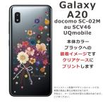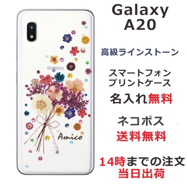 Galaxy A20 ケース SC-02M SCV46 ギャラクシーA20 カバー ラインストーン かわいい フラワー 花柄 らふら 名入れ 押し花風 ブーケフラワー