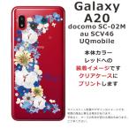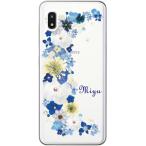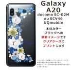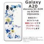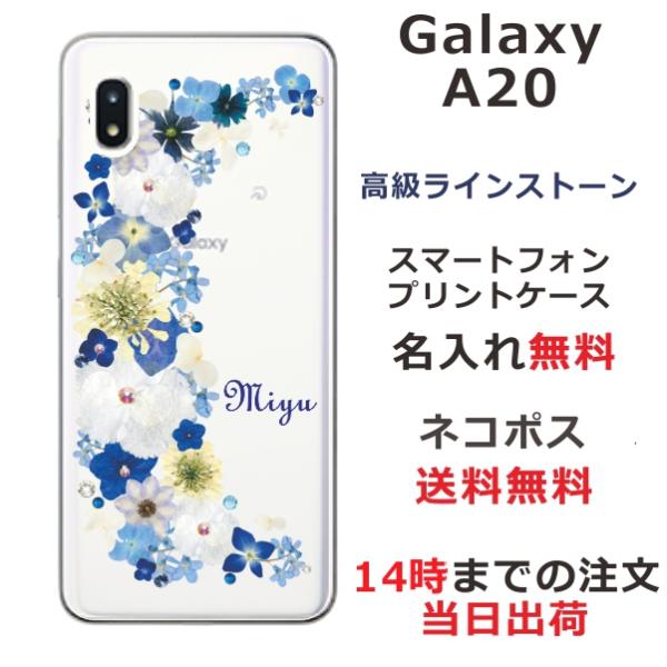 Galaxy A20 ケース SC-02M SCV46 ギャラクシーA20 カバー ラインストーン かわいい フラワー 花柄 らふら 名入れ 押し花風 クレシェンドブルー