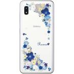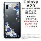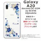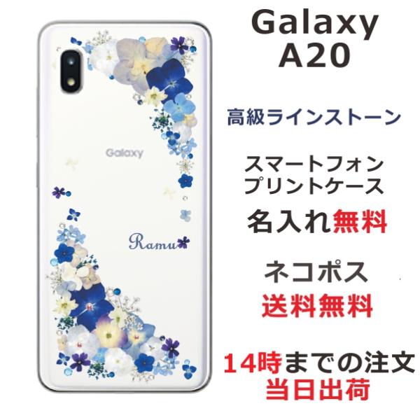 Galaxy A20 ケース SC-02M SCV46 ギャラクシーA20 カバー ラインストーン かわいい フラワー 花柄 らふら 名入れ 押し花風 ビビットブルーフラワー