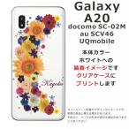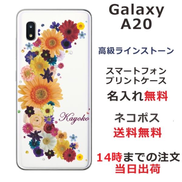 Galaxy A20 ケース SC-02M SCV46 ギャラクシーA20 カバー ラインストーン かわいい フラワー 花柄 らふら 名入れ 押し花風 クレッシェンドカラフル