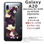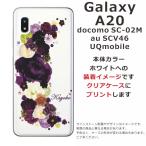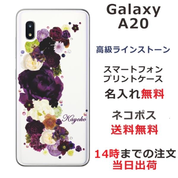 Galaxy A20 ケース SC-02M SCV46 ギャラクシーA20 カバー ラインストーン かわいい フラワー 花柄 らふら 名入れ 押し花風 クレッシェンドパープル