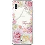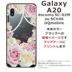 Galaxy A20 ケース SC-02M SCV46 ギャラクシーA20 カバー ラインストーン かわいい フラワー 花柄 らふら 名入れ 押し花風 ローズピンク