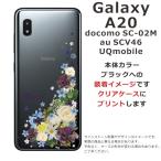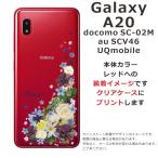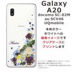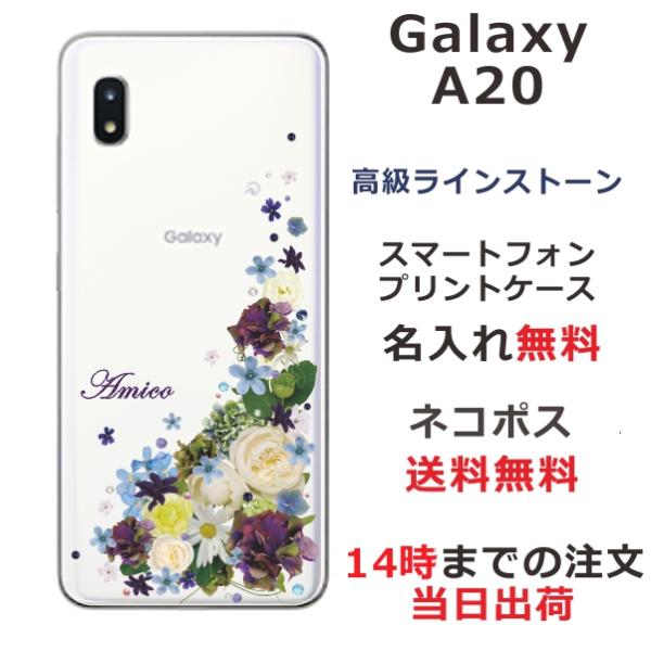 Galaxy A20 ケース SC-02M SCV46 ギャラクシーA20 カバー ラインストーン かわいい フラワー 花柄 らふら 名入れ 押し花風 ナチュラルフラワー