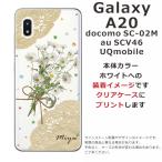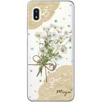 Galaxy A20 ケース SC-02M SCV46 ギャラクシーA20 カバー ラインストーン かわいい フラワー 花柄 らふら 名入れ 押し花風 マーガレットレース
