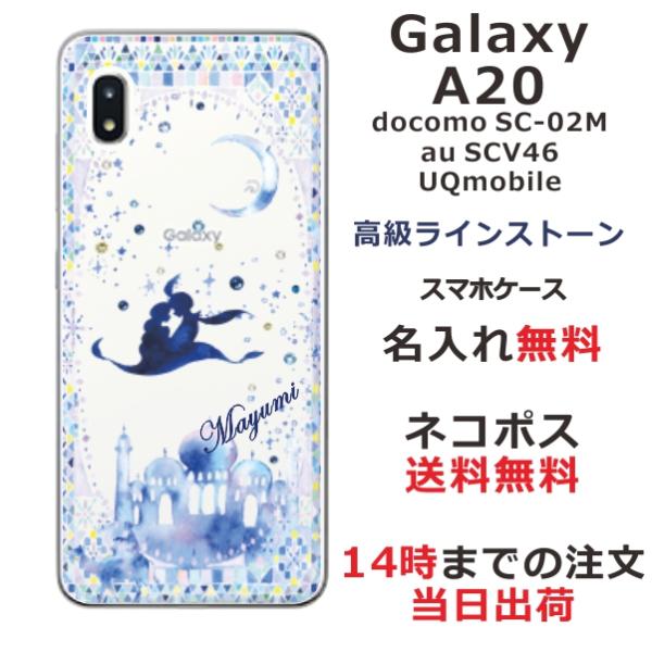 Galaxy A20 ケース SC-02M SCV46 ギャラクシーA20 カバー ラインストーン かわいい らふら 名入れ アラジン