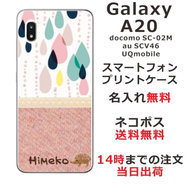 Galaxy A20 ケース SC-02M SCV46 ギャラクシーA20 カバー らふら 名入れ 北欧デザイン ピンク しずく