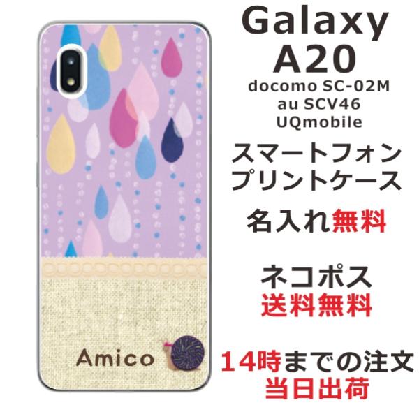 Galaxy A20 ケース SC-02M SCV46 ギャラクシーA20 カバー らふら 名入れ 北欧デザイン パープル しずく