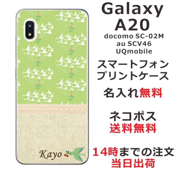 Galaxy A20 ケース SC-02M SCV46 ギャラクシーA20 カバー らふら 名入れ 北欧デザイン ホワイト バード