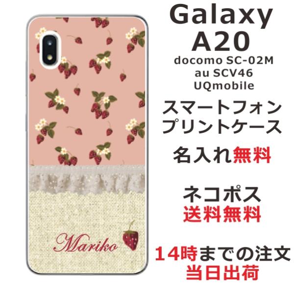 Galaxy A20 ケース SC-02M SCV46 ギャラクシーA20 カバー らふら 名入れ 北欧デザイン イチゴ