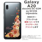 Galaxy A20 ケース SC-02M SCV46 ギャラクシーA20 カバー ラインストーン かわいい フラワー 花柄 らふら 名入れ 押し花風 バラ