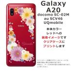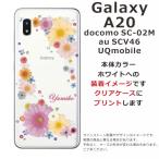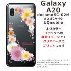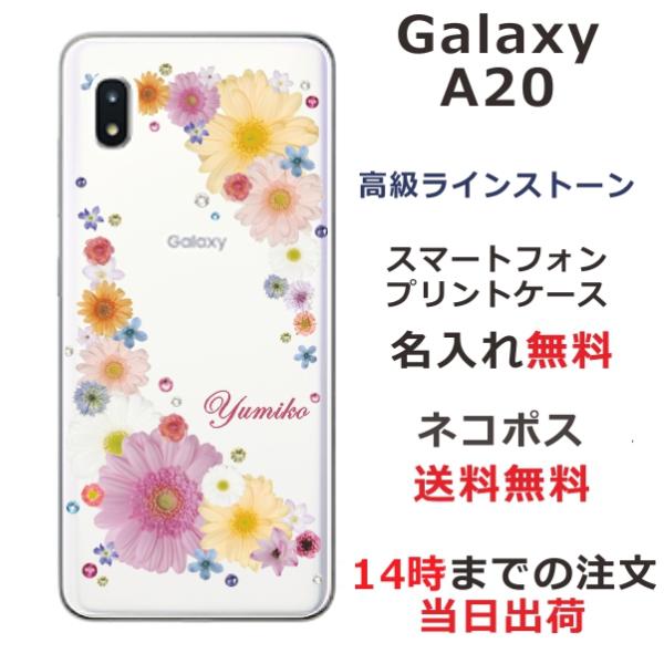 Galaxy A20 ケース SC-02M SCV46 ギャラクシーA20 カバー ラインストーン かわいい フラワー 花柄 らふら 名入れ 押し花風 ポップフラワー