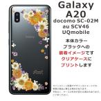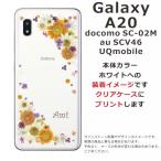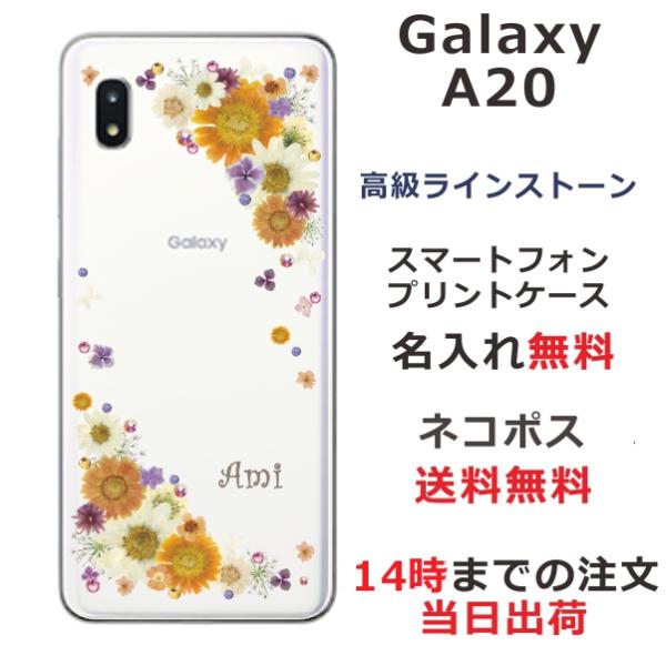 Galaxy A20 ケース SC-02M SCV46 ギャラクシーA20 カバー ラインストーン かわいい フラワー 花柄 らふら 名入れ 押し花風 アンティークフラワー