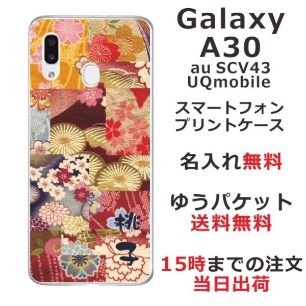 Galaxy A30 ケース SCV43 ギャラクシーA30 カバー らふら 名入れ 和柄 着物パッチワークピンク