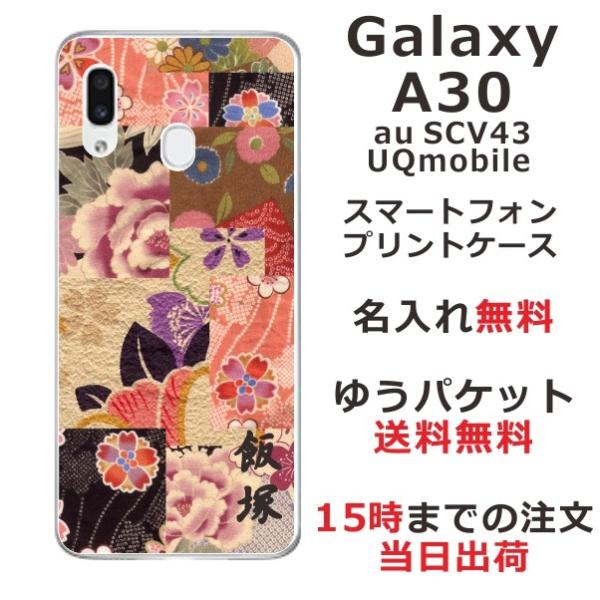 Galaxy A30 ケース SCV43 ギャラクシーA30 カバー らふら 名入れ 和柄 和花パッチワーク