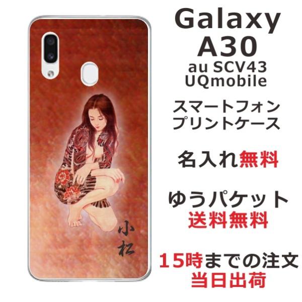 Galaxy A30 ケース SCV43 ギャラクシーA30 カバー らふら 名入れ 和柄 艶女昇龍牡丹