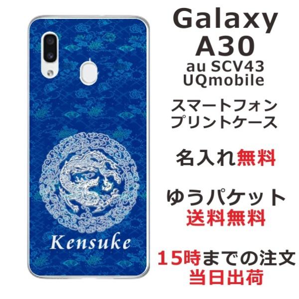 Galaxy A30 ケース SCV43 ギャラクシーA30 カバー らふら 名入れ 和柄 円龍青